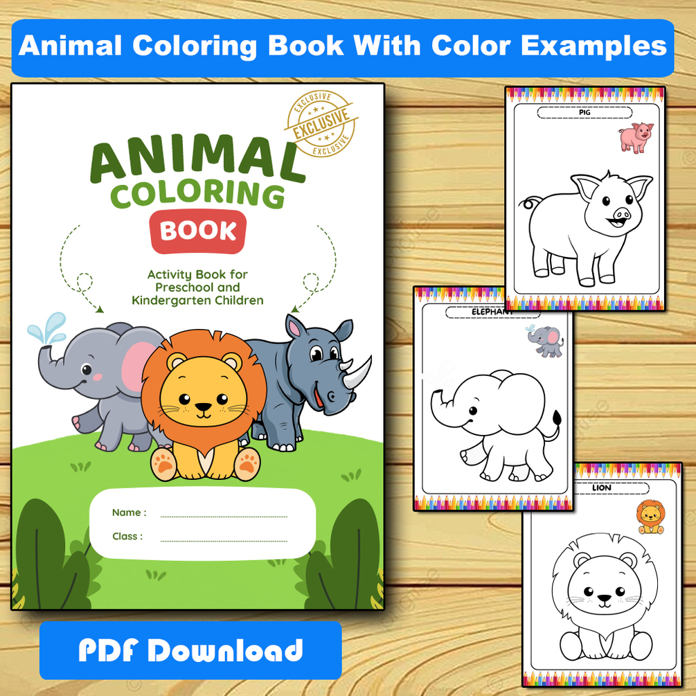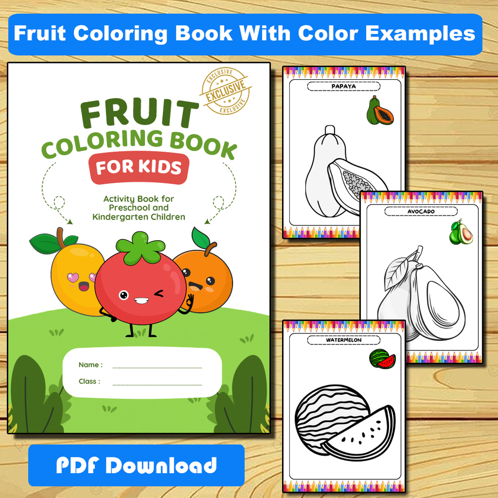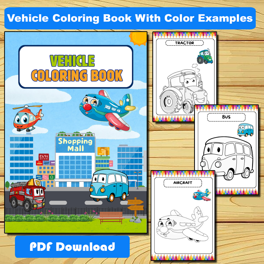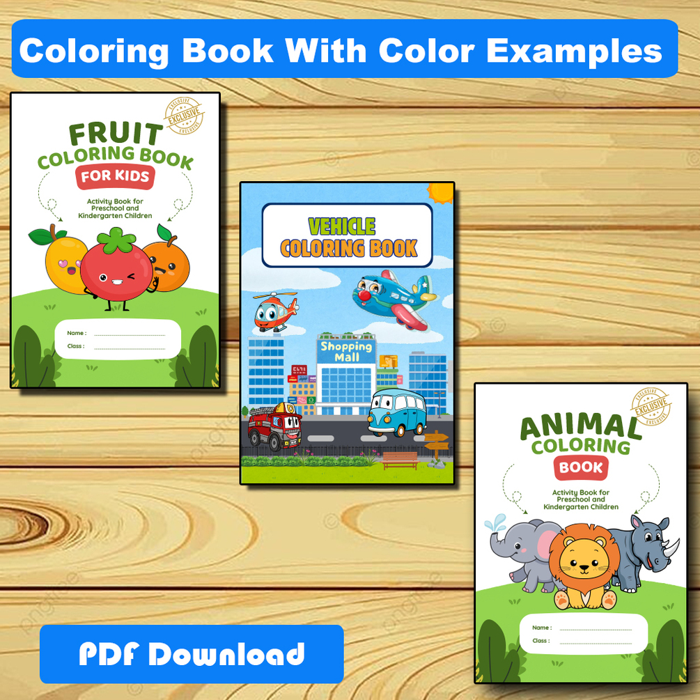 Animal, Fruit and Vehicles Coloring Pages - Printable Coloring Book Kids, Activity for Kindergarten & First Grade With Color Examples